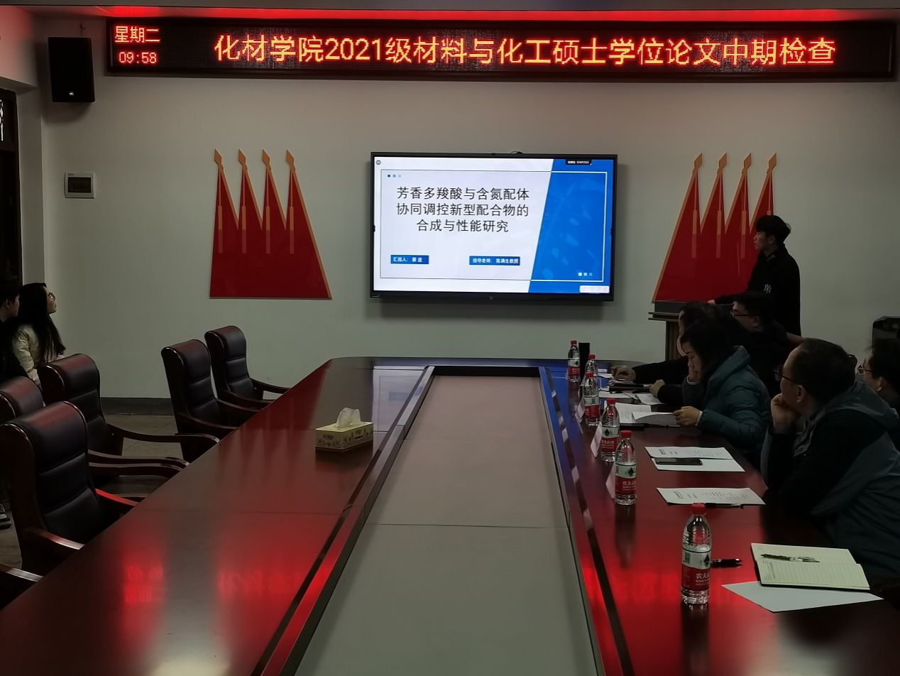 为进一步规范和加强公司产品过程管理,提高硕士学位论文质量,betway西汉姆联平台于2023年12月26日上午10点在化材楼105会议室开展了2021级材料与化工硕士学位论文中期检查。本次中期检查由许志锋教授、刘梦琴教授、陈满生教授、李俊华教授和孙俊彬副教授任评审小组成员,朱小明博士担任秘书。21级材料与化工研究生参与本次中期检查,部分研究生老师、22级和23级材料与化工硕士研究生参与旁听。学位论文中期检查工作由孙俊彬副经理主持。
