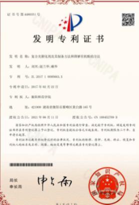 (4)湖南省自然科学基金项目:基于导电聚合物光敏化的复合催化剂制备、分解水制氢及机理研究,项目编号:2019JJ50012,2019-2021.