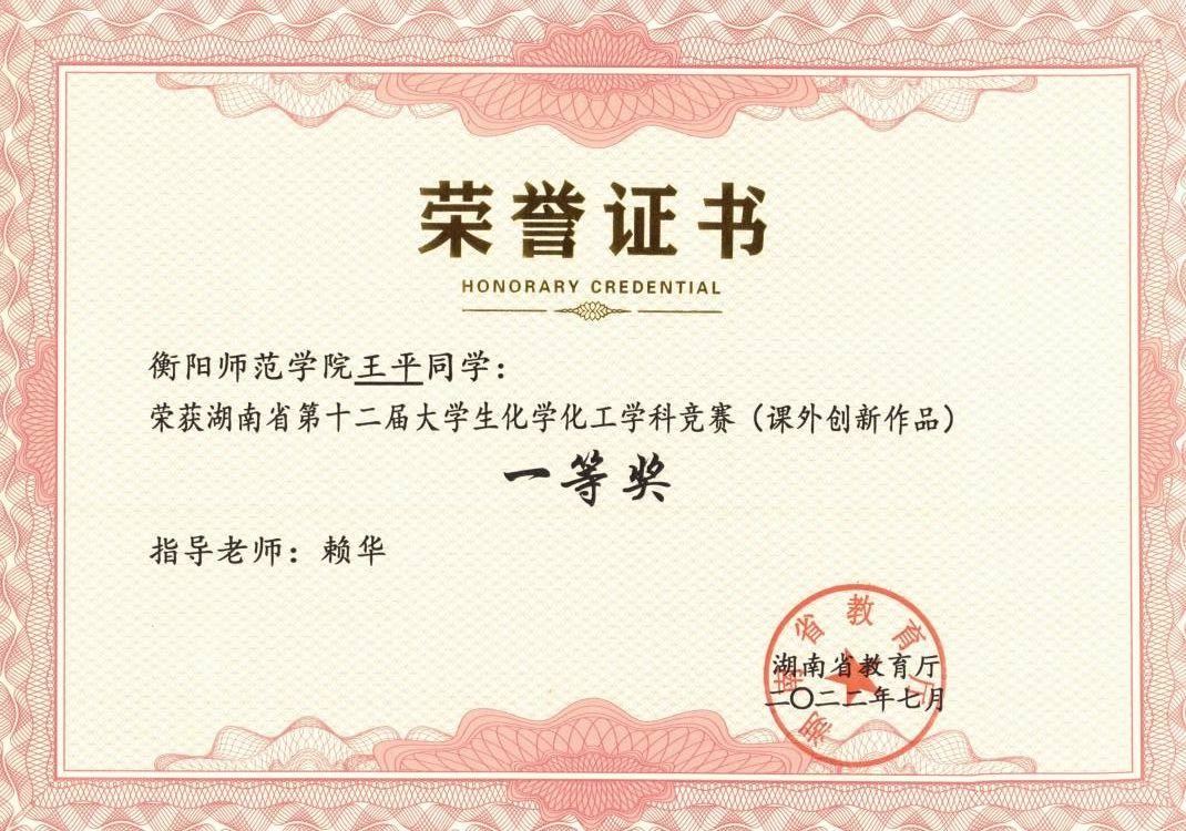 3)湖南省教育厅重点项目:高活性溴代 D-π-A 有机染料的合成及制氢性能研究,项目编号:20A0752021-2023.