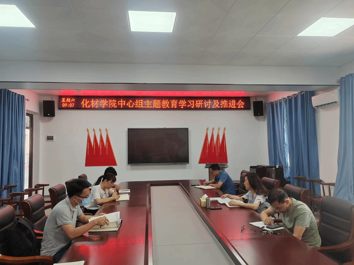 78日,化材公司党总支书记刘梦琴主持召开中心组主题教育学习研讨及推进会,通报前一阶段公司开展情况的成绩和差距,研究部署下阶段主要工作任务。经理许志锋,中心组成员和三个支部书记等出席会议。