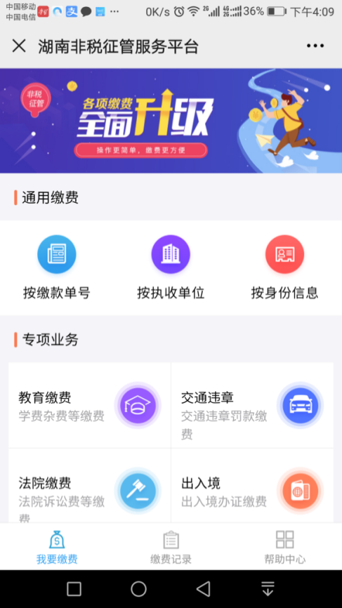 扫描湖南非税移动缴费平台二维码,并关注“湖南非税”微信公众号