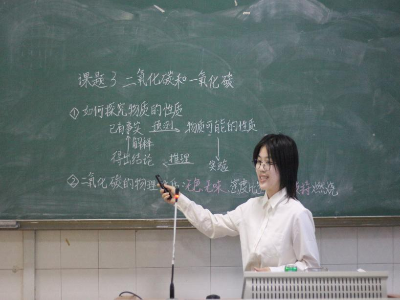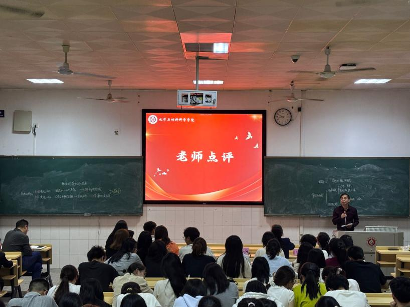 决赛中,各选手的表现都非常精彩。在第一环节的片段教学中,参赛选手先根据教学内容写好板书,然后进行五分钟的片段教学,此环节内,选手们的教学设计别出心裁,讲授时激情澎湃、妙趣横生,带领观众与评委走进绚丽多姿的化学天地,沉醉于知识的奇妙海洋;在教育问答环节,选手根据抽签选取的教学议题现场应答,他们的阐述逻辑清晰,语言流畅自然,精彩表现不仅引得现场掌声雷动,更获得评委们的高度认可与赞誉。