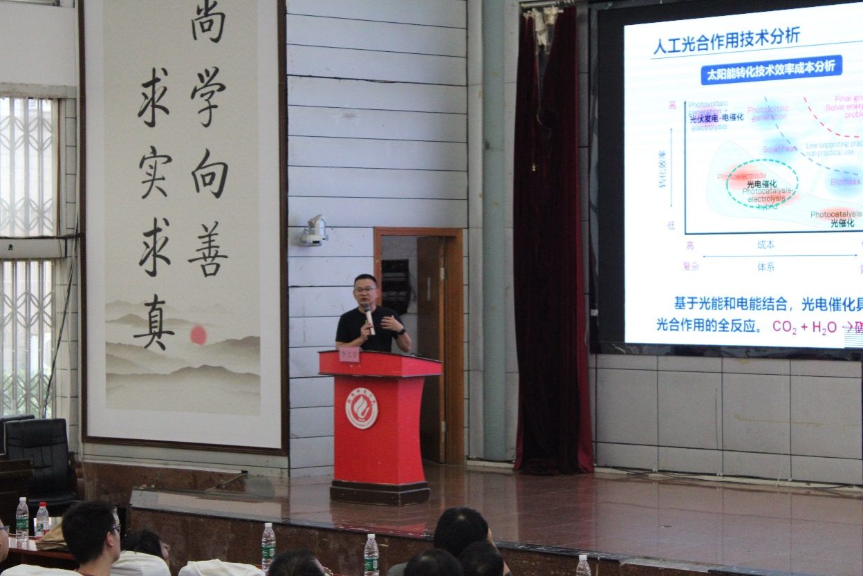 为活跃学术氛围、拓展师生视野,2025年10月17日下午,公司特邀中南大学李文章教授来访交流。李教授在西校区模拟法庭为公司师生带来了一场题为“高效人工光合作用体系构建及反应机制”的精彩学术报告。报告会由公司副经理李文艺教授主持,公司部分专任教师、全体硕士研究生及部分本科生代表参加。