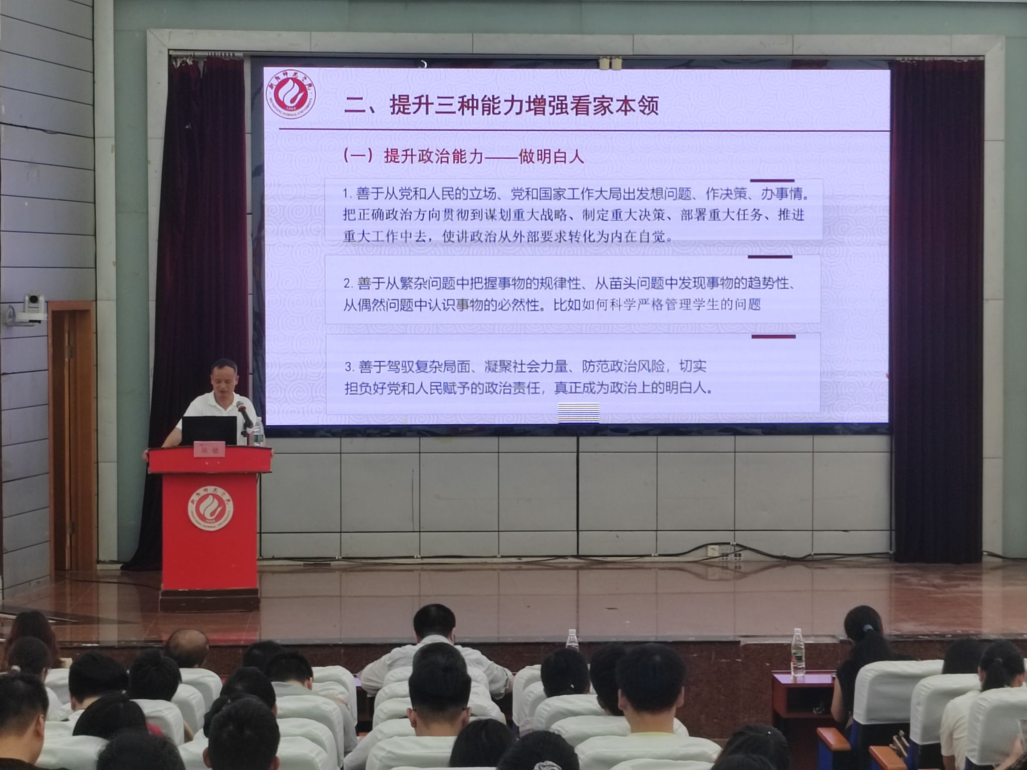 讲课之前,陈敏强调,要深入学习贯彻习近平总书记在主题教育工作会议上的重要讲话精神,全面系统学习习近平新时代中国特色社会主义思想,牢牢把握“学思想、强党性、重实践、建新功”的总要求,努力在以学铸魂、以学增智、以学正风、以学促干方面取得实实在在的成效,从党的科学理论中悟规律、明方向、学方法、增智慧,把看家本领、兴党本领、强国本领学到手,要求全体师生要加强学习,深刻领会,切实提高三种能力,遵守五条纪律,推动公司高质量发展。