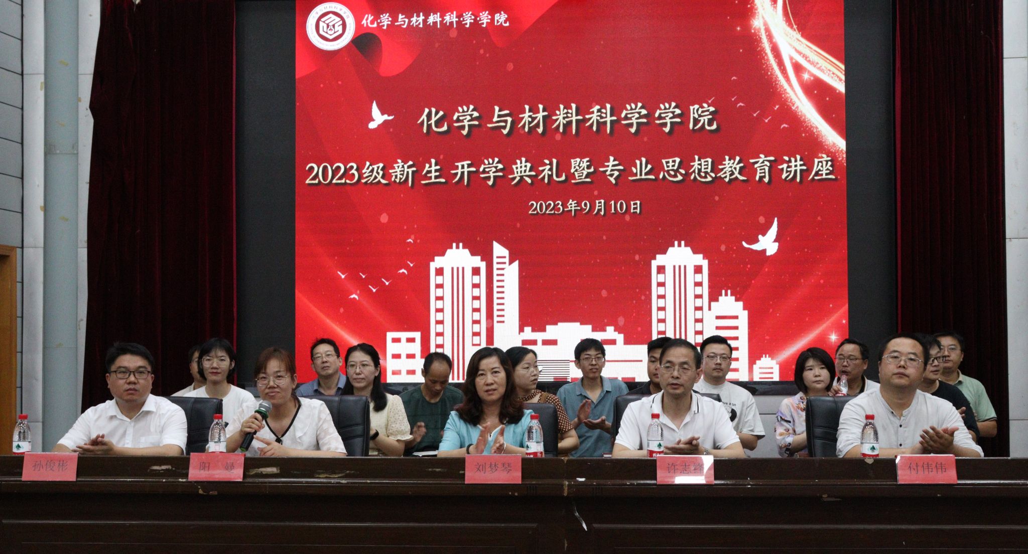 教师代表陈文老师与同学们分享了自己对老员工活的深刻感悟:一是要做一个有道德的人,大学不仅仅是学习知识,更是要修炼自己的德行;二是要学会规划生活;三是要做一个内心强大的人。老生代表潘蕊向同学们分享了自己对老员工活的心得体会,她提醒同学们要珍惜时光,以饱满的精神状态,严谨的学习作风去完成大学四年的学业。2304班彭雅琴同学作为新生代表发言,与同学们分享了祖辈和父辈用自己的力量传承家乡文化的故事,她立志要回到家乡用教育去振兴家乡,让青春之花绽放在祖国教育最需要的地方。