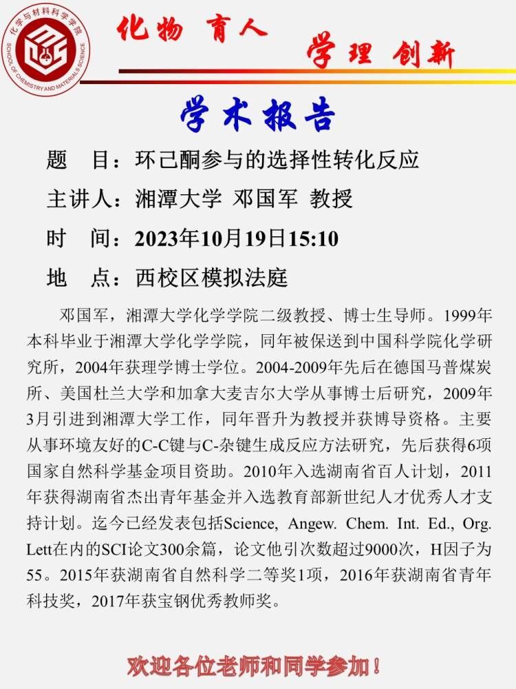 【学术讲堂】湘潭大学邓国军教授学术讲座通知