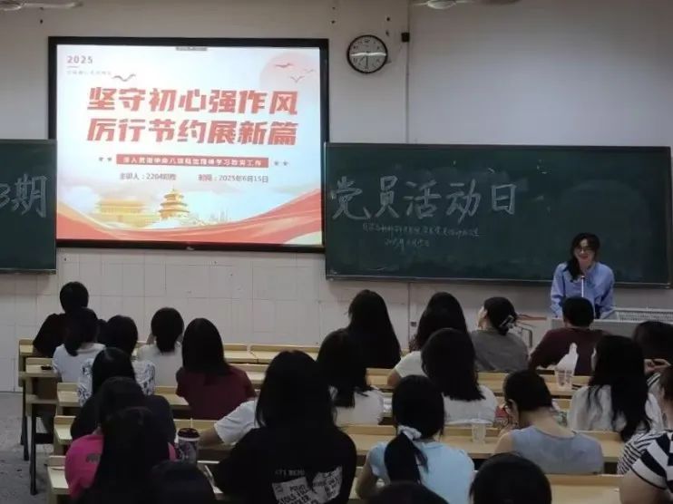 2025年6月15日晚,betway西汉姆联平台第九十三期党员学习日活动于行知楼601开展,2204班邓煦同学以《坚守初心强作风厉行节约展新篇——深入学习贯彻作风建设重要政策精神》为题与全体员工党员和学习积极分子分享了她的学习心得。