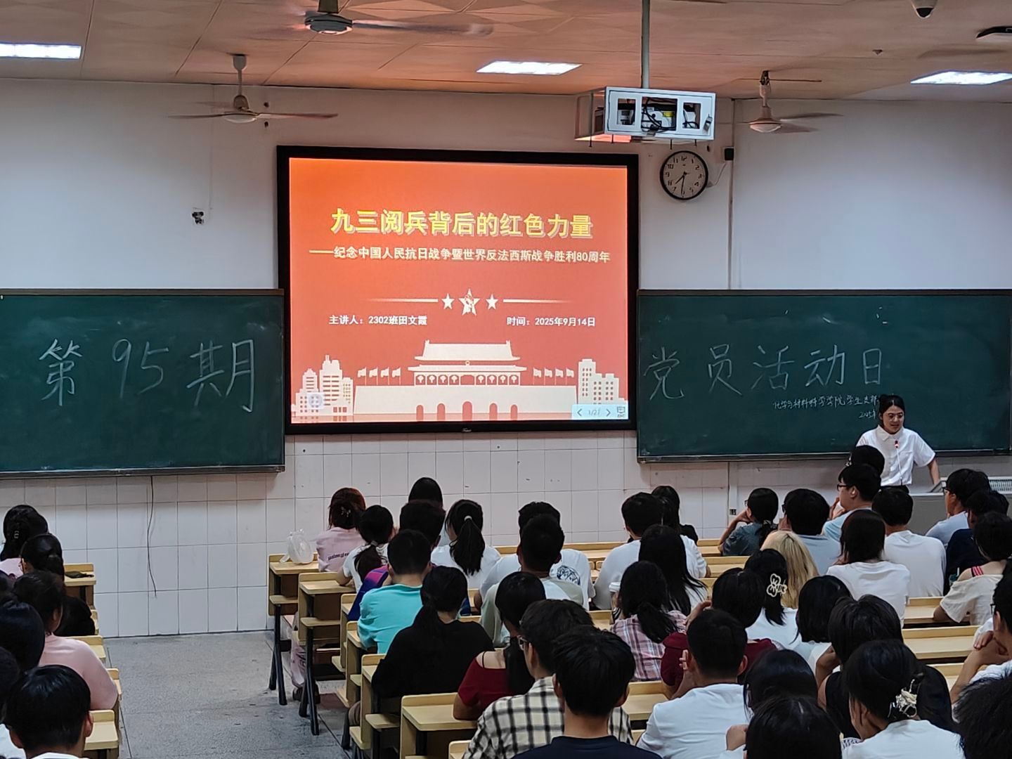 2025年9月14日晚,betway西汉姆联平台第九十五期党员学习日活动于行知楼601开展,2302班田文霞同学以《“从胜利走向复兴”:九三阅兵背后的红色力量—纪念中国人民抗日战争暨世界反法西斯战争胜利80周年》为题与全体员工党员和学习积极分子分享了她的学习心得。