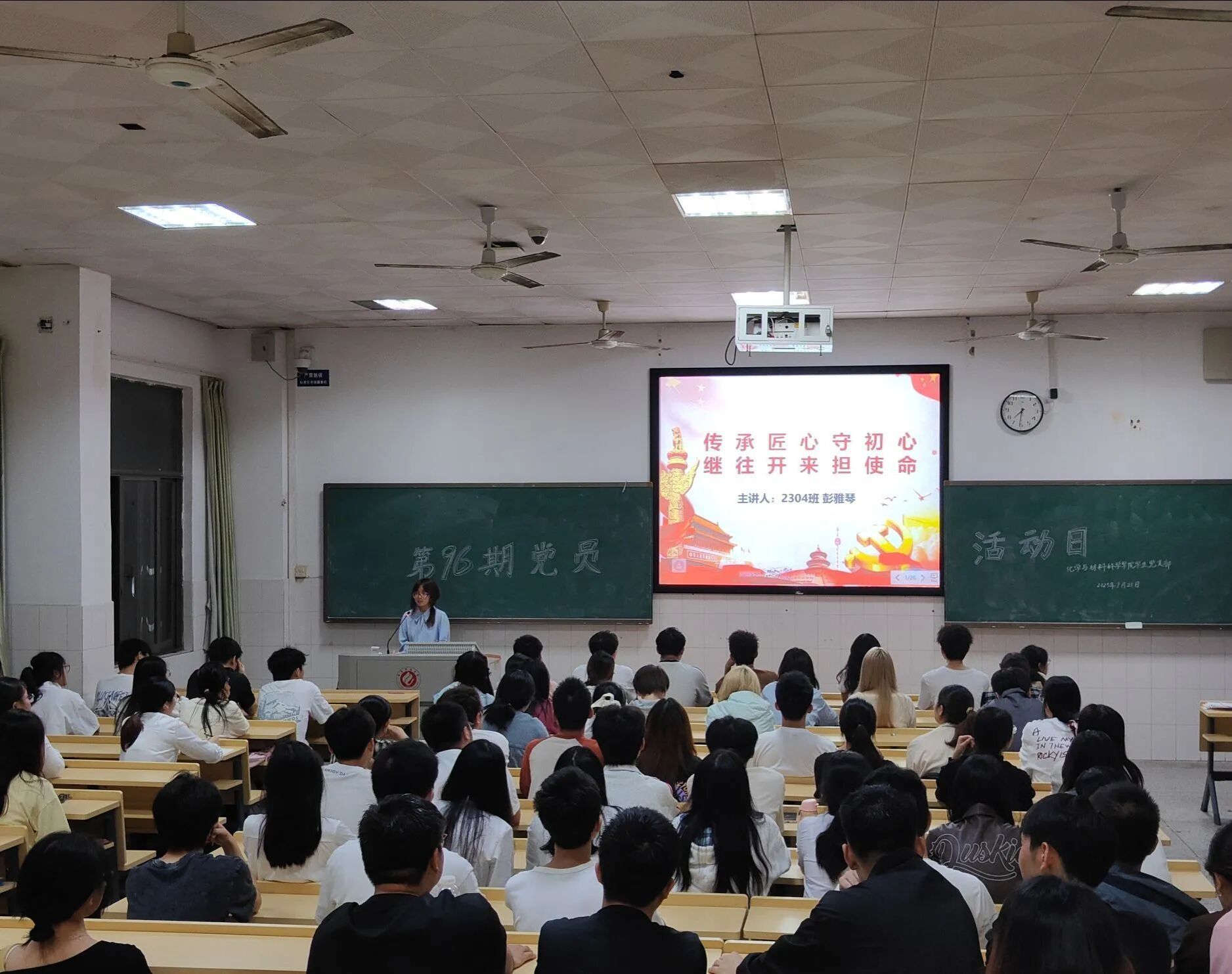 2025年9月21日晚,betway西汉姆联平台第九十六期“党员学习日”活动于行知楼602开展,2304班彭雅琴同学以《传承匠心守初心,继往开来担使命》为题与全体员工党员和学习积极分子分享了她的学习心得。