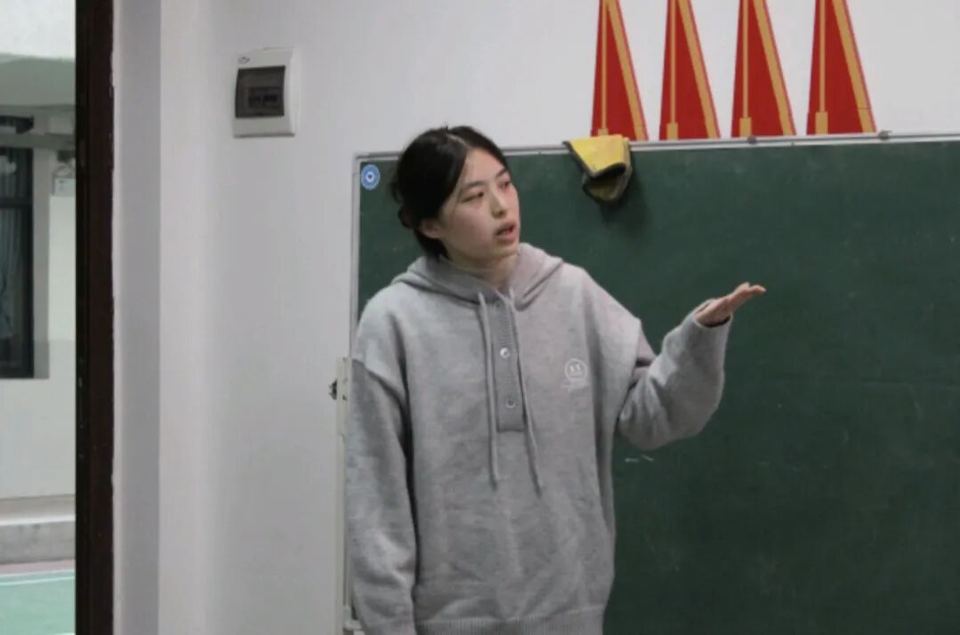 刘梦婷同学则围绕“水的构成”主题,以创新设计凸显教学潜力。她采用化学史料与生活结合的导入方式,先引入亚里士多德、邹衍关于“水的构成”的经典观点,再借化学史料梳理前人探索脉络,引导同学们深入思考,充分调动学习兴趣。周杰老师点评时,肯定其准备充分,称赞“声音洪亮、教态自然、课堂自信强”,同时指出教学用语精准度需提升;付伟伟副经理补充点评,表扬其教学素养扎实、课堂环节衔接流畅,建议进一步打磨课件内容、熟悉讲课细节,推动教学效果再提升。