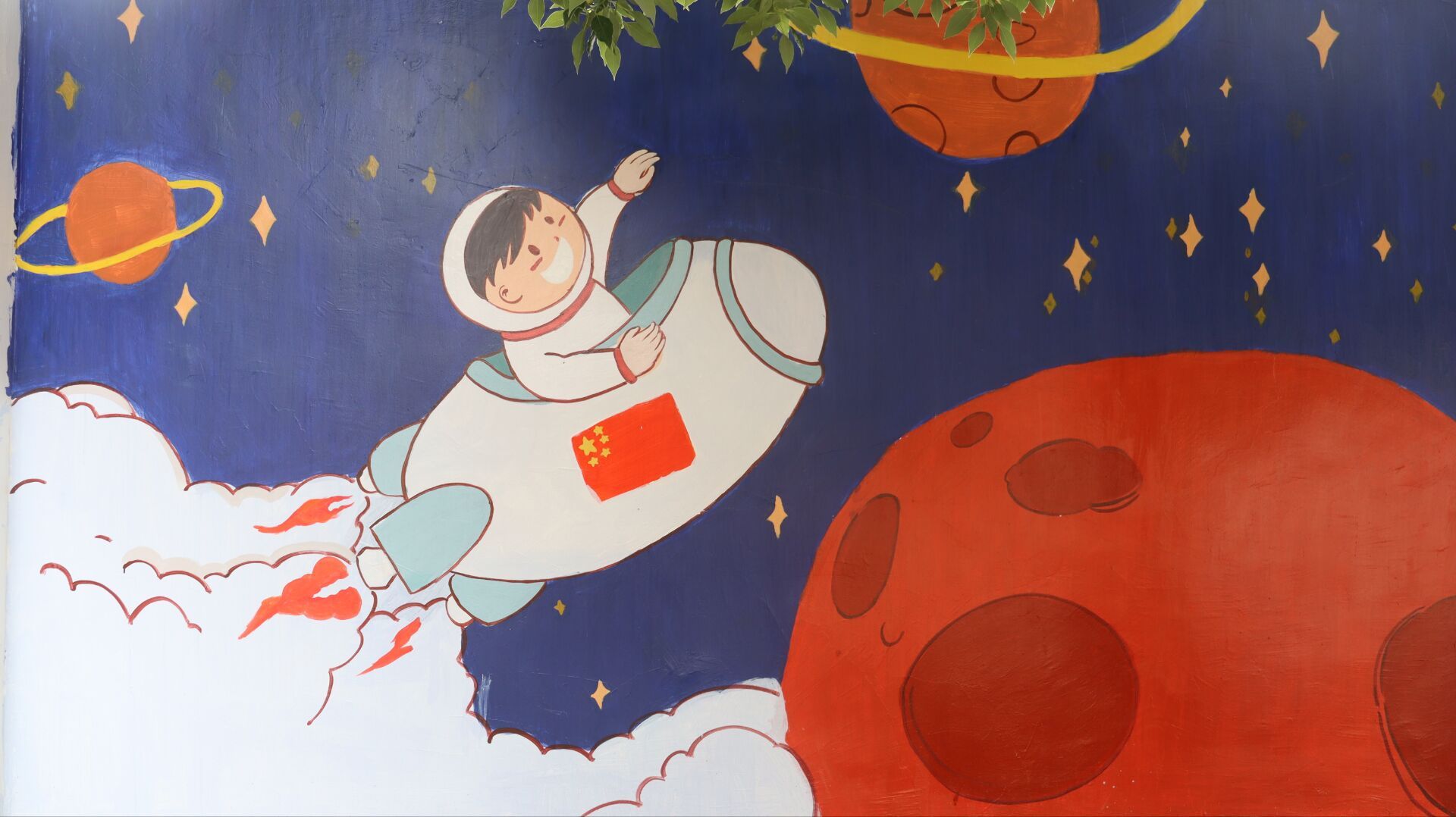 科学航天墙画,扮靓美丽校园