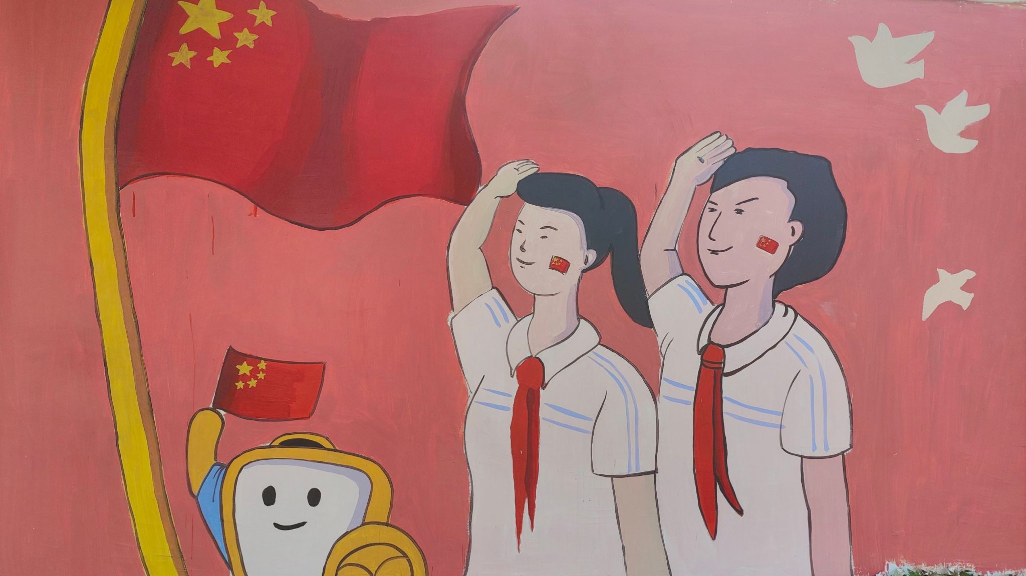队员魏湘表示,虽然每天工作强度较大,身体会觉得很累,但想到孩子们看到墙绘开心的样子,浑身就充满动力。