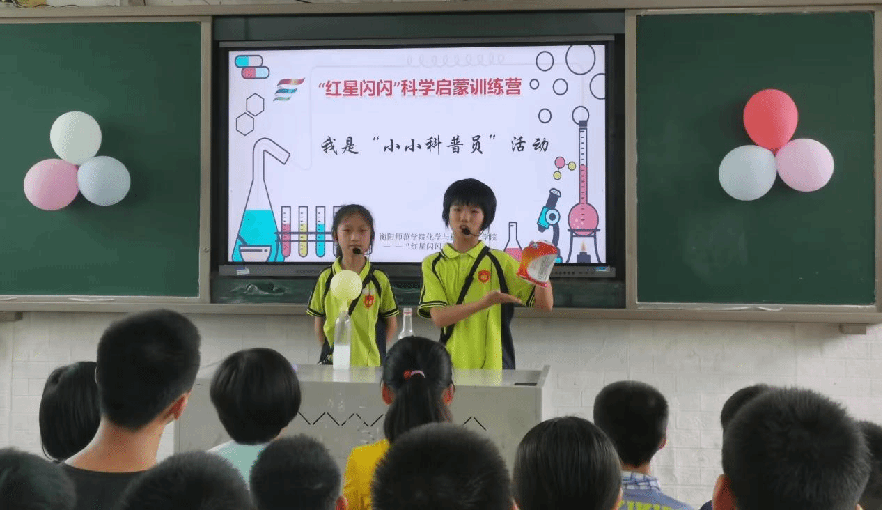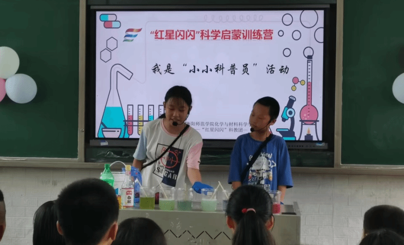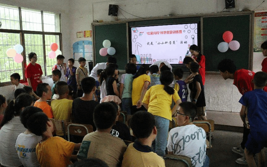 此外,“红星闪闪”科教团在衡南县近尾洲联合公司中心小学还开展了“科技发明小故事”、“生活中的化学”、“化学趣味实验”等一系列的科学启蒙课,并以《科学与梦想》为主题在该校校园绘制了30余平方米的墙绘,旨在为乡村的孩子们营造一个学科学、爱科学、用科学、传科学的良好氛围。