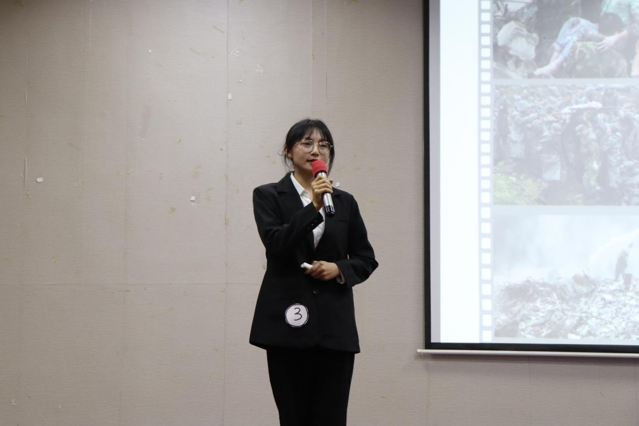 8位选手结合自己学习党的二十大精神的体会和实践感悟,从不同角度回答了“我辈青年如何在第二个百年新征程中为建功新时代交上满意的青春答卷”的问题:《坚定“两个确立”,共绘奋斗蓝图》《以青春之名,担时代之责》《青春向党,不负韶华》……选手们铿锵有力的语言,鲜明突出的主题,落落大方的表现,赢得了观众的阵阵掌声。其中,马莹同学声情并茂地向同学们讲述了黄文秀同志艰苦奋斗、为国为民的优秀事迹,以及抗疫医生彭银华舍己为人、无私奉献的感人故事,诠释了新时代青年应有的人生追求和奋斗理想,获得了本次比赛的一等奖。赛后,王逸龙同学说:“各位参赛选手将二十大精神与自我发展紧密联系,演讲具有感染力,作为观众的我为之振奋。”