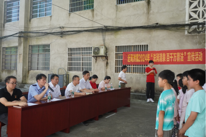为提高乡村留守儿童的自我保护能力和法律意识,让孩子们度过一个安全、快乐的暑期,7月18日,在衡南县近尾洲联合公司中心小学开展了一场“法润清泉 百千万普法”宣传活动,活动由衡南县近尾洲镇政府、衡南县近尾洲联合公司中心小学主办,betway西汉姆联平台“红星闪闪”科教团承办,160余名小员工现场聆听了关于防溺水、防性侵、防校园霸凌的安全知识宣讲课。近尾洲联合公司蒸市中学董事长谢光辉、近尾洲镇党委副书记李华平莅临现场并指导工作。