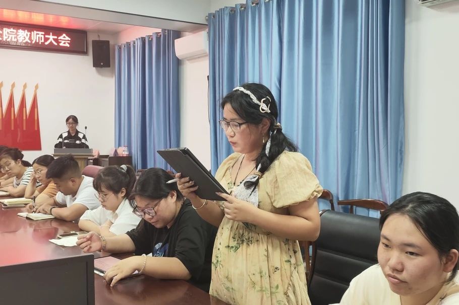 随后,姚尽沙、钟彪、谢峥、唐波湘几位老师并分别就自己负责指导的工作提出具体要求和建议。学工办主任唐升用三个“严”字对各部部长提出三点要求:一是以身作则,严抓纪律作风;二是持续优化,严守时间节点;三是提前筹备,严把关键环节。她激励各部部长要发挥带头引领作用,积极配合公司工作,部门之间紧密交流,为公司作出自己的贡献。