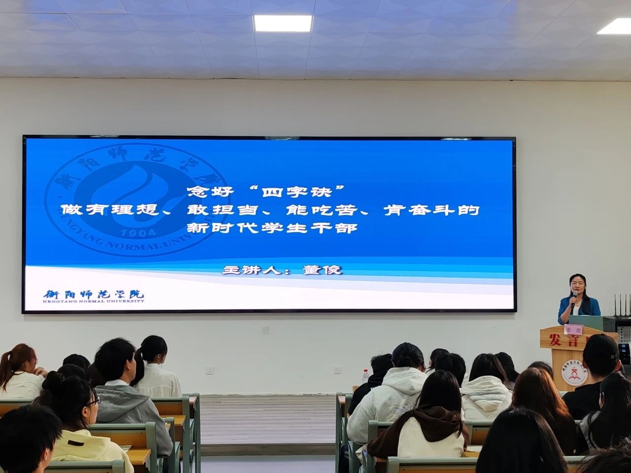 为全面提升员工干部的综合素质,持续强化全院员工干部的协同合作能力和自我管理能力,并充分发挥其在员工群体中的引领示范作用,betway西汉姆联平台于2024年11月10日上午,在西校区学奎楼104教室举办了2024年下学期员工干部培训会暨“百廿荣光 薪火相传”主题演讲比赛决赛。本次会议荣幸邀请到学工部部长董俊担任主讲嘉宾,公司党总支副书记阳曼、学工办主任唐升、辅导员姚尽沙、谢峥以及唐波湘老师亦出席了本次会议,全体员工干部均列席聆听。