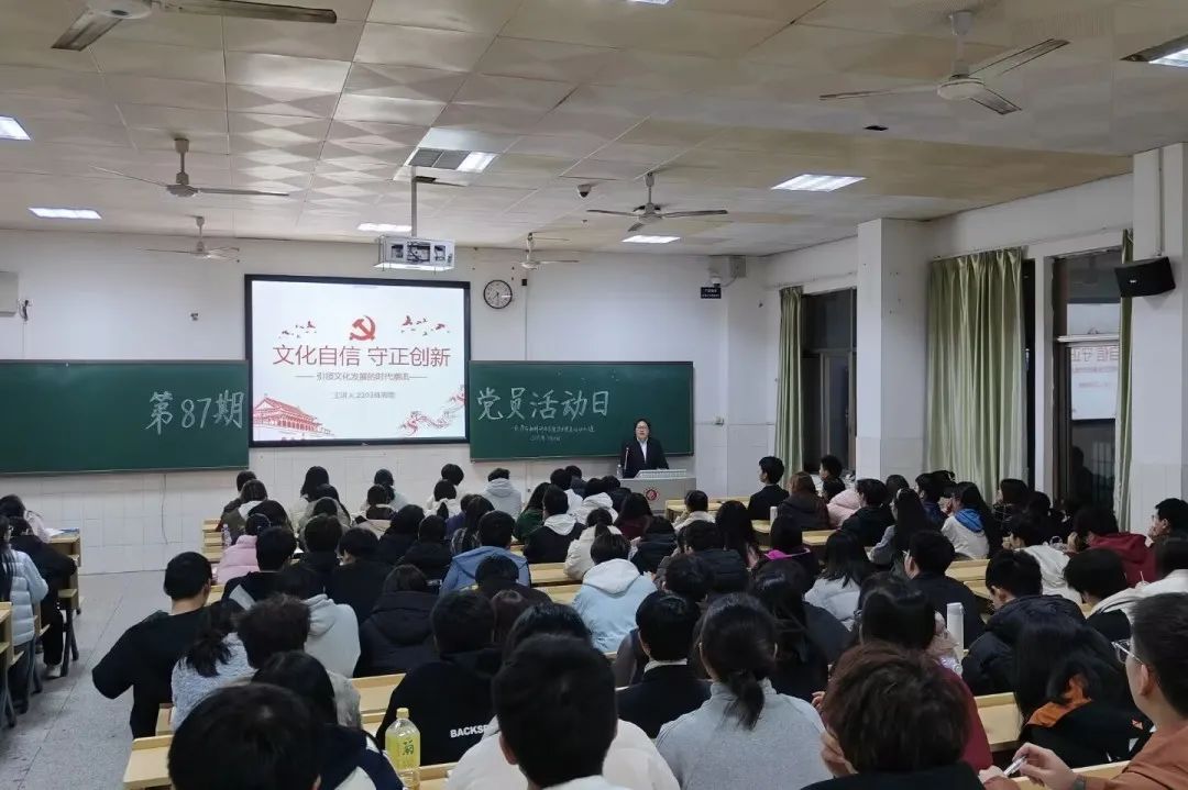 2025年3月16日晚,第87期党员学习日活动于行知楼601开展,2203班周雨同学以《学习两会精神—文化自信,守正创新》为题与全体员工党员和学习积极分子分享了她的学习心得。