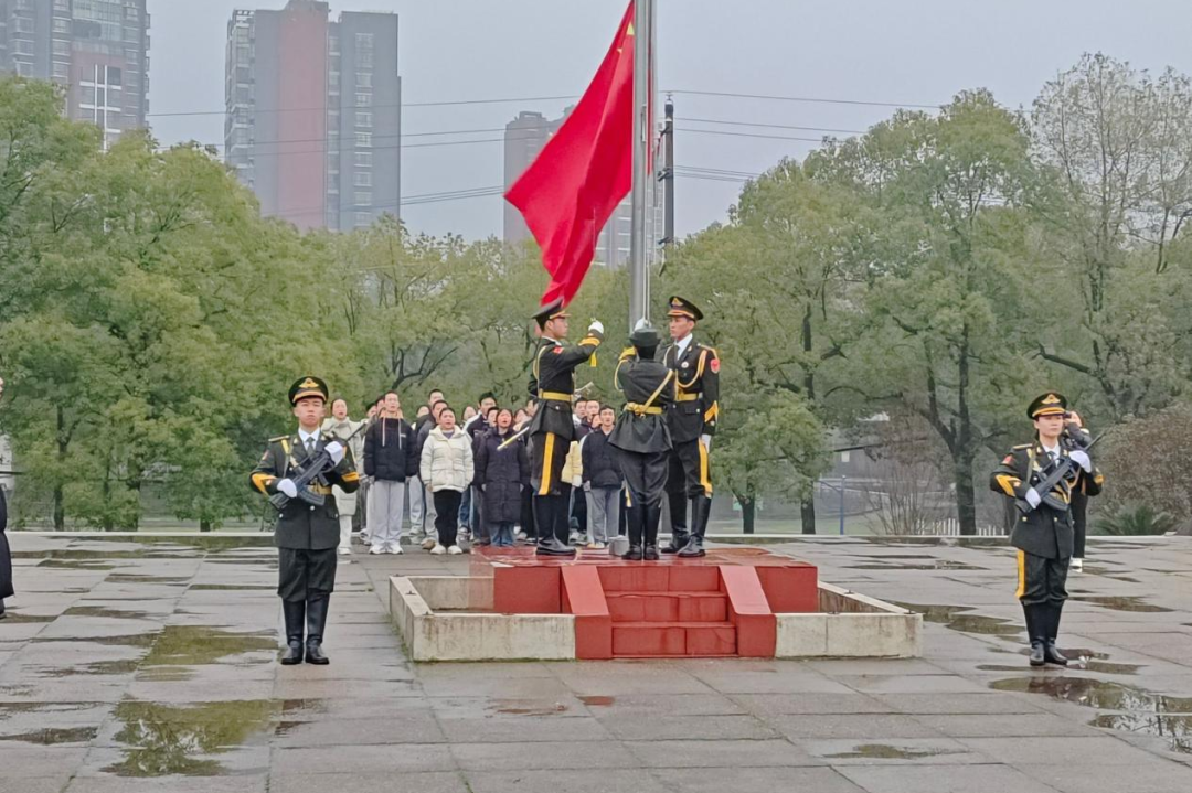 晨光初破晓,国旗护卫队已整装待发,他们以挺拔的军姿、坚定的眼神,守护着国旗的尊严与荣耀。随着“敬旗”口令的响起,护旗方阵以铿锵有力的正步,划破清晨的薄雾,每一步都凝聚着青年学子的热血与忠诚。当《义勇军进行曲》激昂的旋律响起,五星红旗在全体师生的注视下冉冉升起,那一刻,家国情怀在每一个人的心中激荡,凝聚成一股不可阻挡的力量。