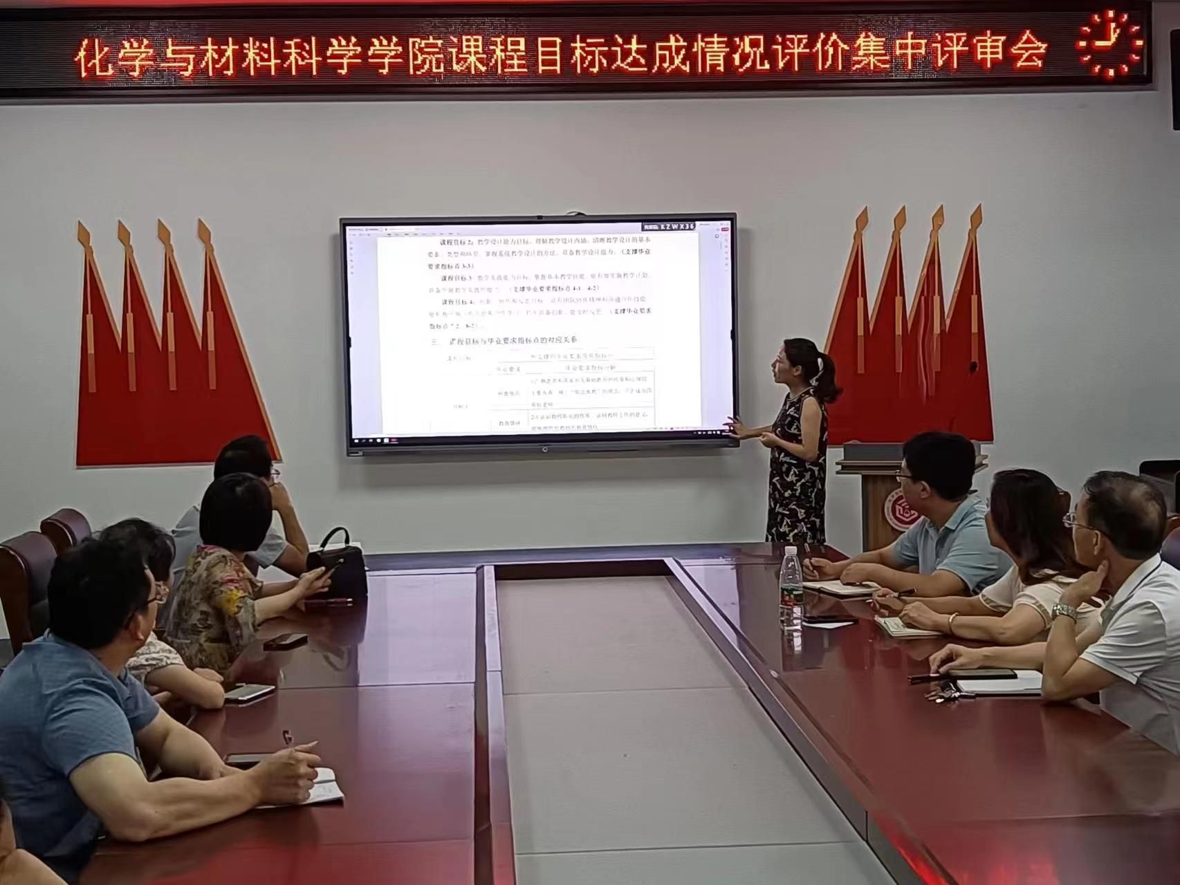 首先,毛芳芳等5位教师对自己所教课程的达成度、存在的问题和改进措施进行了汇报。5位老师严格按照专业认证的标准和理念,从课程目标的设置、毕业要求指标点的关联度和考核环节的设置等方面进行了全面的分析和总结,分析合理,整改措施符合员工实情。5位教师所教课程包含了教师教育课程、专业基础理论课程和实践课程,具有较高的代表性。其次,课程目标达成评价小组对本学期化学专业核心课程达成度分析报告进行审核。最后,课程目标达成情况评价小组经讨论研究后对本学期各门课程达成评价分析情况进行了全面总结,提出了相应的整改措施。